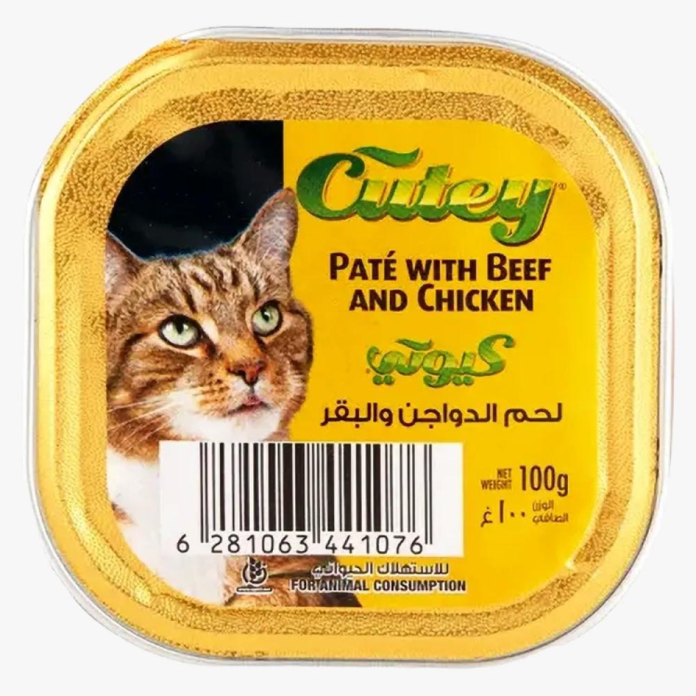🐾 كيوتي طعام قطط – لحم الدواجن والبقر 100 جرام وجبة رطبة لذيذة بنكهة الدواجن ولحم البقر، مقدمة من كيوتي لتمنح قطتك تغذية متوازنة وطعمًا شهيًا لا تقاوم.