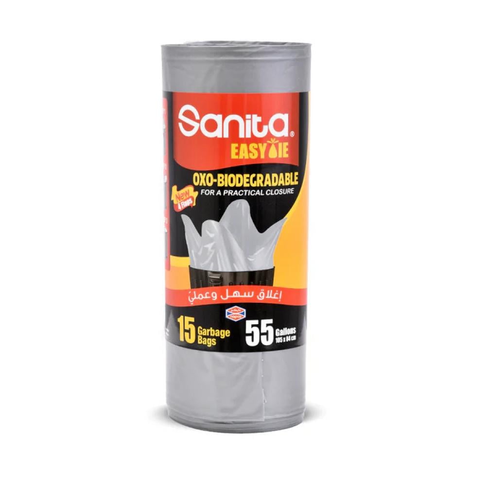 سانيتا أكياس نفايات سهلة الربط، حجم كبير جداً 55 جالون، 15 كيس