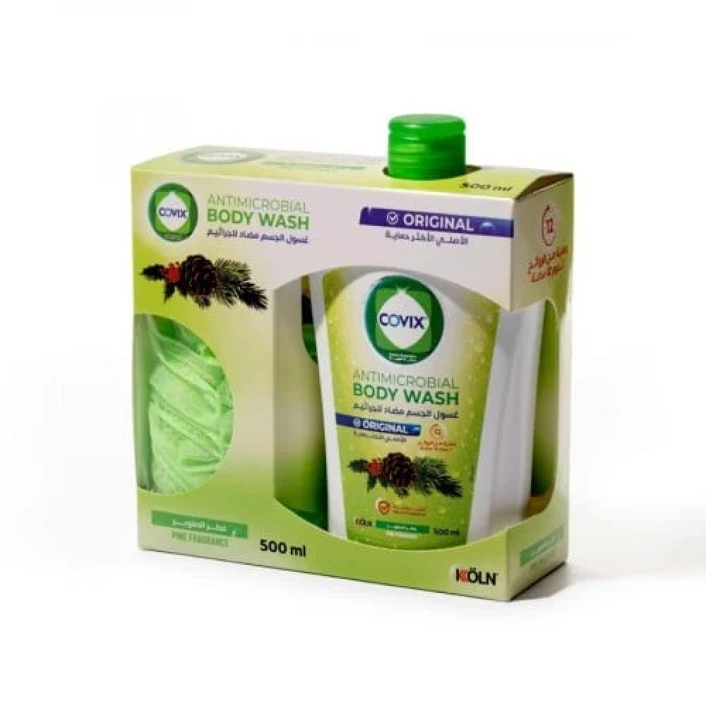كوفيكس كير غسول الجسم مضاد للجراثيم برائحة الأصلية مع ليفة - 500 مل