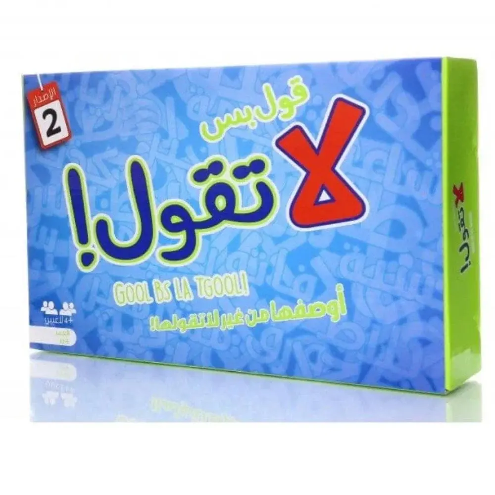 هي لعبة جماعية شهيرة تُستخدم للتسلية والتفاعل بين الأصدقاء والعائلة. تتمحور اللعبة حول التحديات اللفظية والفكرية حيث يتعين على اللاعبين إبداء إجابات أو شرح كلمات معينة دون ذكر كلمات محظورة أو معينة مرتبطة بالموضوع. تُعد هذه اللعبة مثالية لحفلات أو جلسات اجتماعية، حيث تُحفز التفكير السريع وتزيد من التفاعل بين اللاعبين.